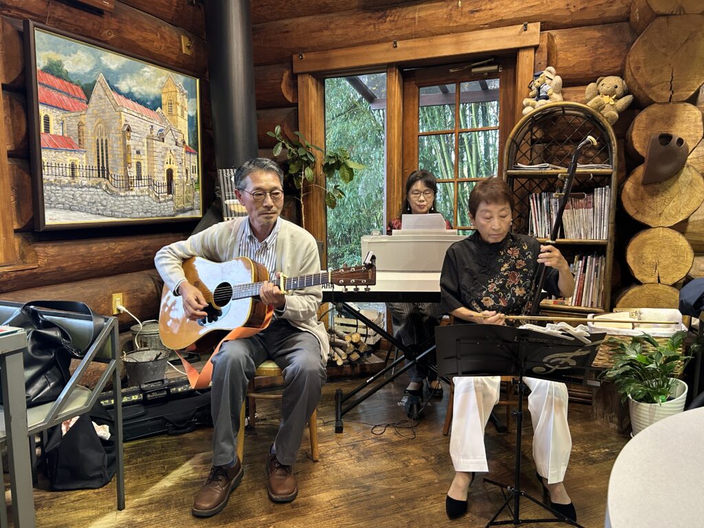 今日は朝から雨が降っていて、足元悪い中、定期演奏会の応援をしにお越し頂きまして、本当にありがとうございました。紅葉が綺麗いな季節です、各地で文化祭など、色々イベントが盛りたくさんです。また、今日午前中総合練習もあって、皆さんはお疲れの中、楽器の搬入や写真撮りなど、お手伝いをして頂き、感謝しております。今日演奏するメンバーは素敵なご夫婦です。ギターと二胡、そして布施先生のキーボードであの名曲を演奏しました。ほろ酔いいい雰囲気です。表現の違う難しい曲を半年間練習をし続けてきて良かったと思います。応援して下さったご家族の皆さんも本当にありがとうございました。